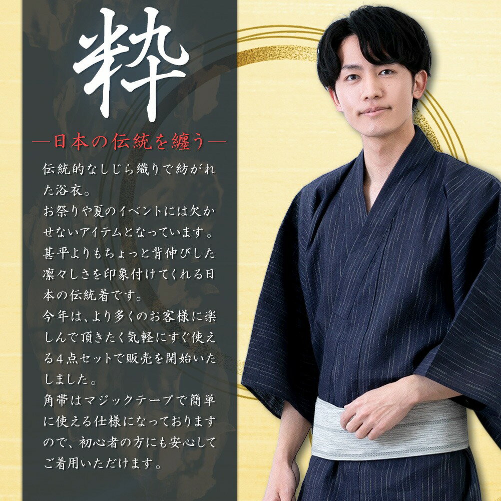 浴衣 メンズ 3点セット【簡単ワンタッチ帯・下駄3点セット】しじら織り ゆかた おしゃれ フルセット帯 下駄 腰紐 男性 ゆかた 全11色 023L1700