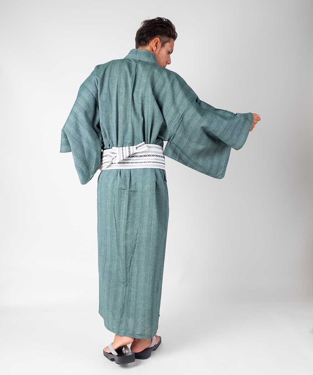 |送料無料|浴衣 メンズ浴衣4点セット【浴衣+帯+下駄+腰紐】国産高級生地使用 浴衣 セット・男性用お仕立て上がり 浴衣 4点 セット メンズ 男浴衣 ゆかた 日本製生地 しじら織り グリーン 緑 無地 和服 和装 おしゃれ 夏祭り 大人 父の日 プレゼント