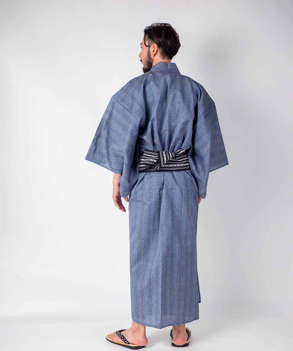 |送料無料|浴衣 メンズ浴衣4点セット【浴衣+帯+下駄+腰紐】国産高級生地使用 浴衣 セット・男性用お仕立て上がり 浴衣 4点 セット メンズ 男浴衣 ゆかた 日本製生地 しじら織り ネイビー ブルー 無地 和服 和装 おしゃれ 夏祭り 大人 父の日 プレゼント
