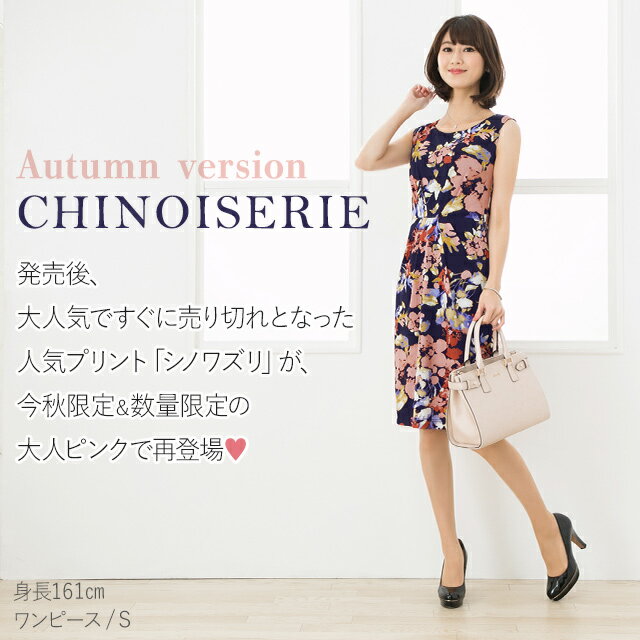 ケリーXライン:シノワズリ 2019Autumn ver.ジャージー 30代 40代 大人 上品 エレガント 着やせ タイト 春/夏/秋 花柄 ワンピース 膝丈 ノースリーブ S M L XL トールサイズ