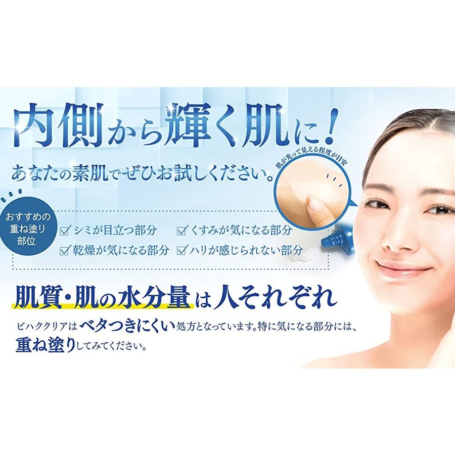 【商品詳細】 ・名称:ビハククリア BIHAKU CLEAR ・内容量:50g ビハククリアはプラセンタ、大きさの異なる3種類のヒアルロン酸、トレハローズ、セラミド配合。