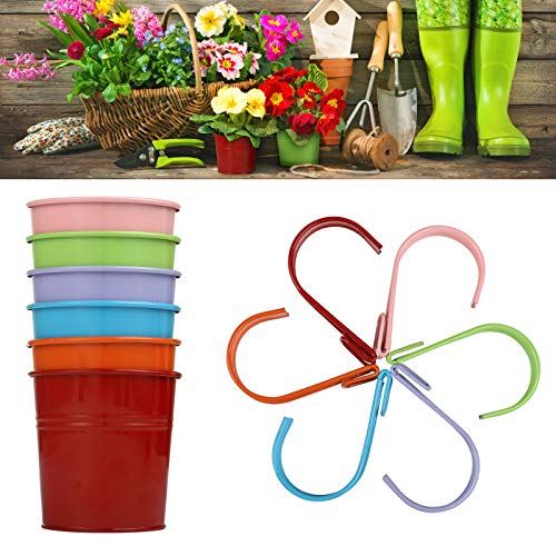 ・明るくカラフルな6色の金属製の植木鉢セットです。