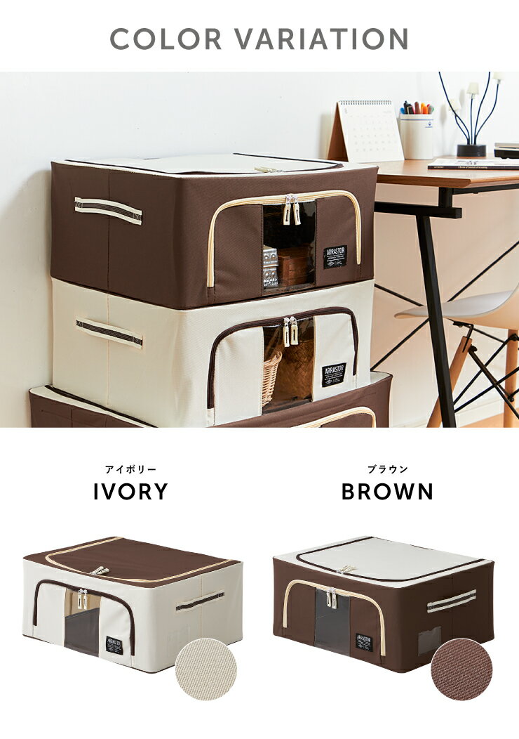 スタッキングボックス 幅50cm 44L 窓付き フタ付き ファブリック 積み重ね コンパクト 前開き 扉 蓋 すき間 おしゃれ 北欧 リビング 衣類収納 子供部屋 スタックボックス マルチケース おもちゃ箱 収納