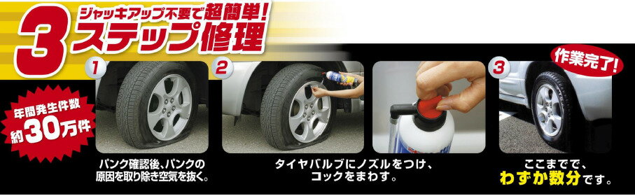 ●応急パンク修理剤はあくまで一時的な修理をするための商品です。