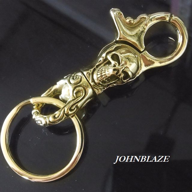 金色 真鍮製 キーチェーン キーホルダー キーリング スカル 髑髏 ガイゴツ グロテスク アラベスク クラスプ ジョイントパーツ リングカン付 ベルトループ ウォレットチェーン フック メンズ 男性用 レディース 女性用 おしゃれ バイカー プレゼント ストリート 送料込み
