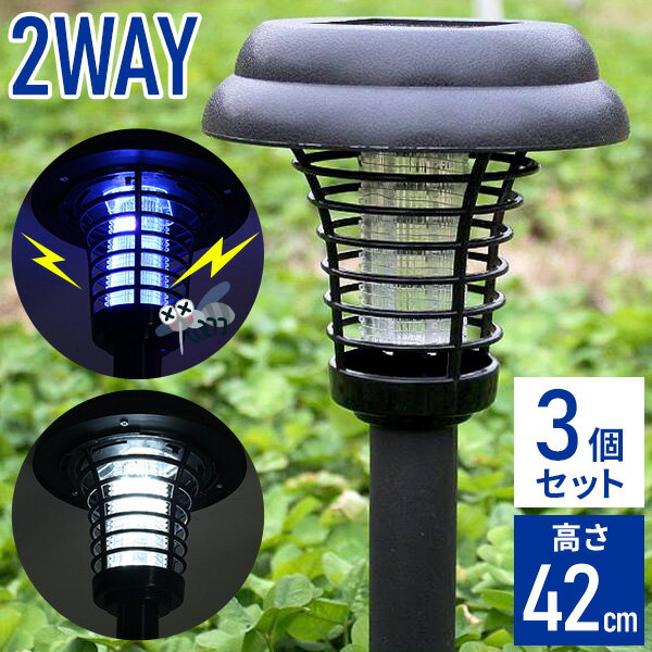 2WAY 電撃殺虫灯/ガーデンライト 屋外用 ソーラー充電式 防滴 配線不要 電気代0円 自動点灯 夏物特集【 殺虫灯 殺虫器 LEDライト 害虫対策 ソーラーライト 誘虫ランプ 庭 ガーデニング まとめ買い 】 ◇ ガーデン殺虫ライトAXL