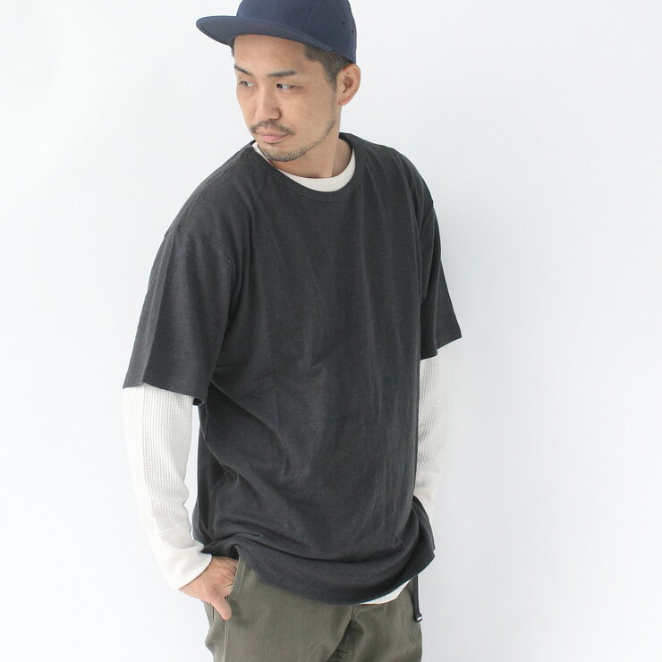 カラーバリエーションが豊富なので コーディネイト別にいろいろなスタイルが楽しめるベーシックな1枚 ヘンプコットンの素材感がいい感じに着なれた雰囲気をだしてくれるので 馴染みのあるTシャツになります。