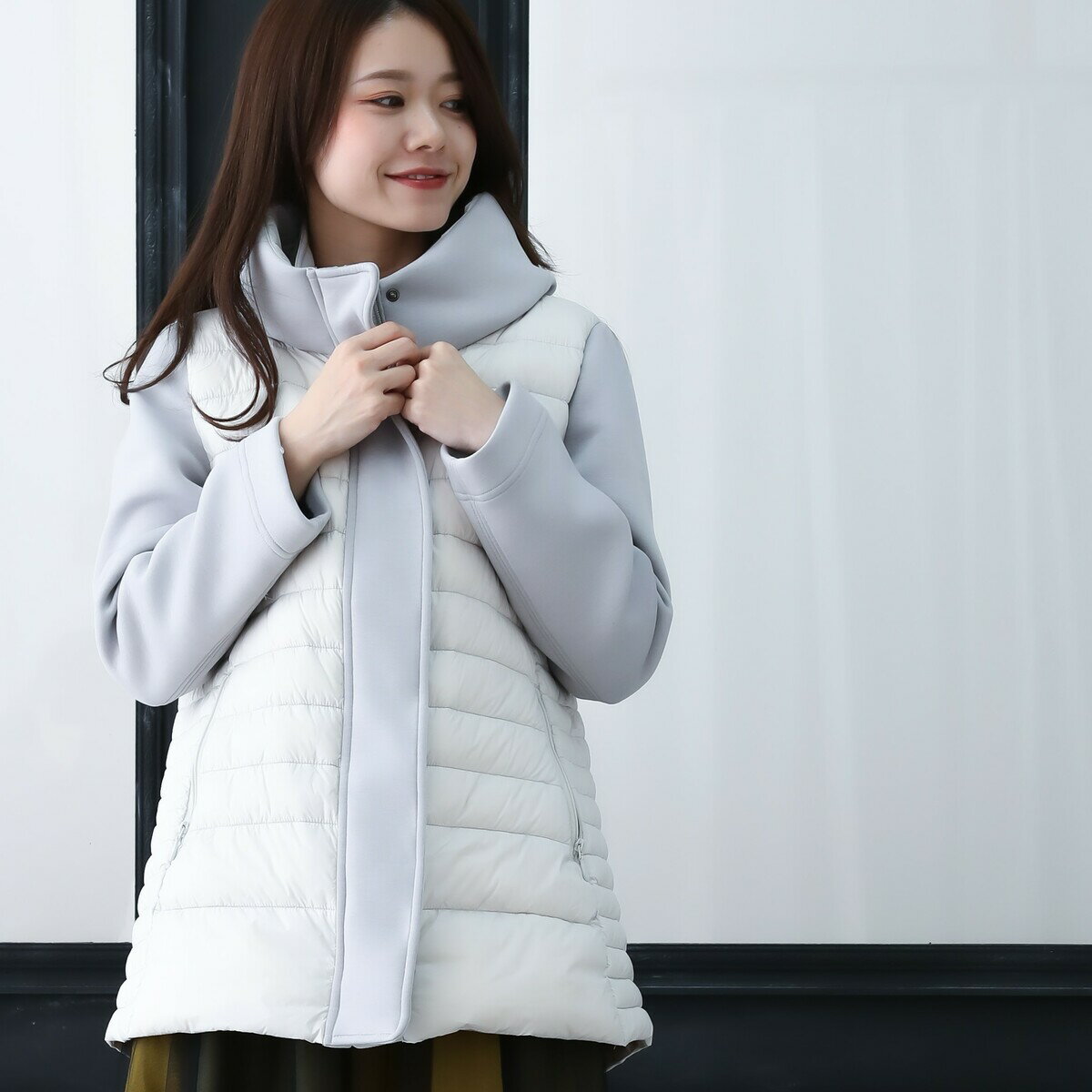 レディース ファッション ミセスファッション ダウン ダウンジャケット ニットドッキング ミセス カジュアル エレガンス ニット切替 スタンド 軽い 軽量 冬 防寒 M L グレー ベージュ ゴールド カーキー ネイビー チャコール