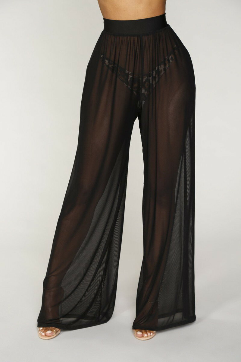 送料無料 ガウチョパンツ ロングパンツ 長ズボン シースルー セクシー レディース ボトムス ハイウエスト ワイドパンツ バギーパンツ 透け感 メッシュ 薄手 シンプル 無地 単色 ソリッドカラー SEXY 女性用 婦人用 S M L XL XXL 2X