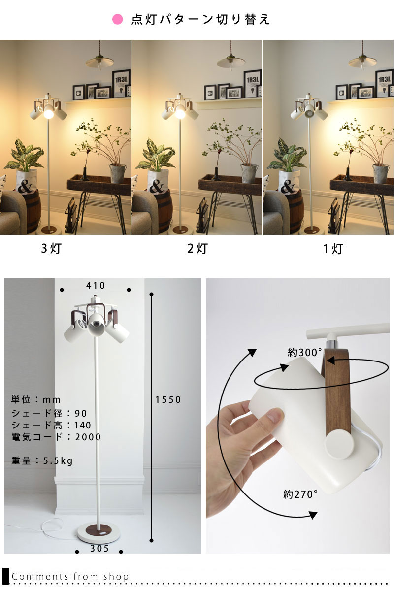 E26/40W相当 LED電球(電球色) E26/60W相当 LED電球(電球色) E26/100W相当 LED電球(電球色) E26/60W相当 リモコン式LED電球 3個+リモコンSET D E T A I L & S P E C - 商 品 詳 細 と 仕 様 - ■ 商 品 名 ───────────────────────── Brownie(ブラウニー フロアランプ) ■ サ イ ズ (mm) ───────────────────────── シェード径90×高さ140 全体幅410×高1550 ベース径305×高35 ■ 素 材 ───────────────────────── スチール、天然木 ■ 対 応 電 球 ───────────────────────── 口金E26/消費電力60W以下×3(電球は別売り ■ 重 量 (kg) ───────────────────────── 5.5 ■ ス イ ッ チ ───────────────────────── ロータリースイッチ(3灯→2灯→1灯→消灯) ■ 保 証 期 間 ───────────────────────── メーカー1年間保証 ■ 知っておいて頂きたいこと ───────────────────────── ・組み立て式です。