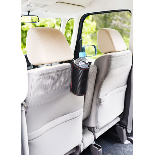 ■取付フック付きでエアコンルーバーに掛けたり、ヘッドレストポールに掛けて後部座席で使用可。