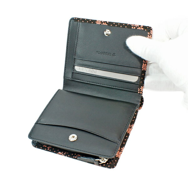 印伝 【甲州印伝 印傳屋 上原勇七】財布 二つ折り財布【2217 コスモス 黒地×ピンク漆】 女性用 レディース 鹿革 本革 レザー 花柄 ブランド 【YM01】