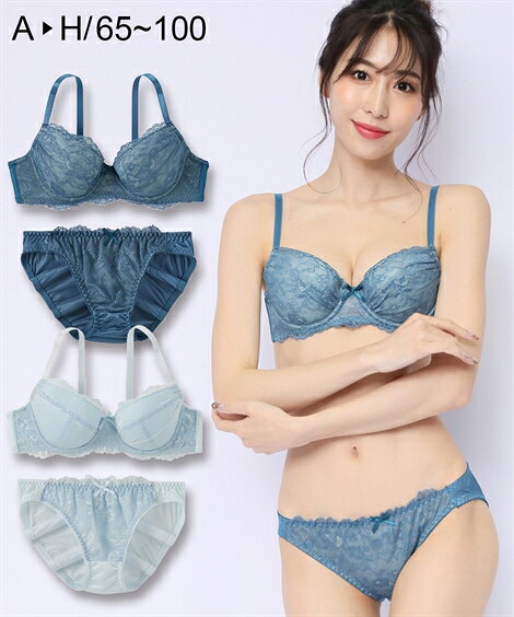 ブラジャー ショーツ セット 大きいサイズ レディース ボタニカル風 レース グリーン/サックス G85_LL〜H100_5L ニッセン nissen