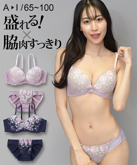 ブラジャー&ショーツセット 脇肉すっきり クラシカル風ガーデンレース ブラジャー・ショーツセット ニッセン nissen
