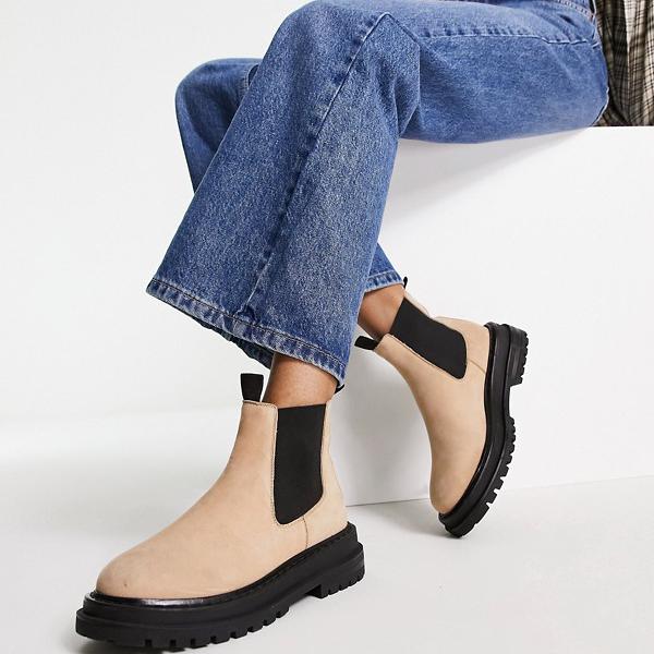 エイソス ASOS asos ASOSDESIGNベージュのスエードチェルシーブーツを鑑賞 靴 レディース 女性 インポートブランド 小さいサイズから大きいサイズまで