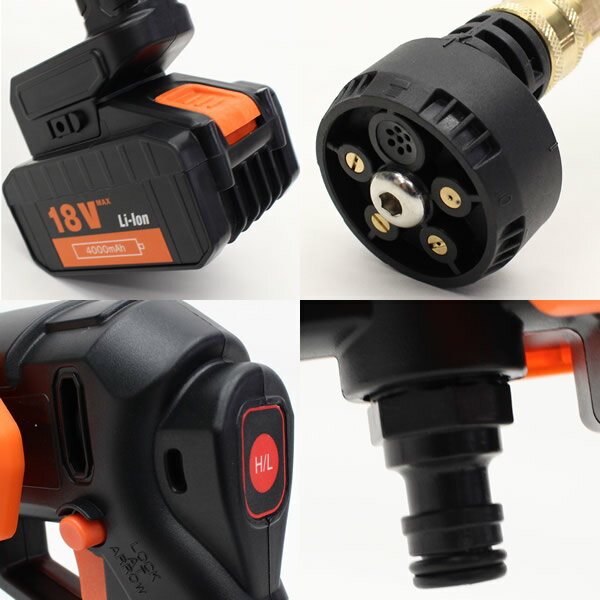 ■ ヒロコーポレーション ■ポータブル&ハンディタイプで楽々お掃除◆ 主な特長 ◆◆ 主な仕様 ◆本体サイズ約幅300×高さ220×奥行95mm重量約1kgバッテリー18V 4000mAh連続使用時間約30〜60分最大水圧22bar生産地中国付属品多機能ノズル/ショートノズル/ロングノズル/バッテリー/充電用アダプター耐水ホース4.5m/汲水フィルター/ワンタッチジョイント×2/ホースクランプ